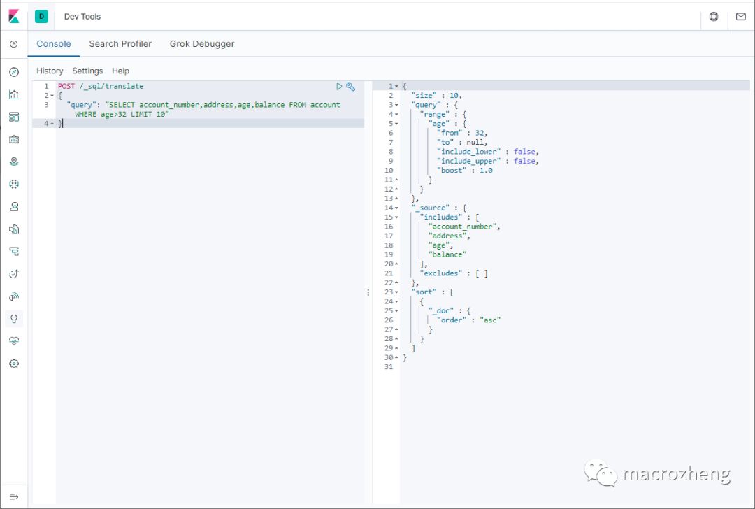 当我们需要使用Query DSL时,也可以先使用SQL来查询,然后通过Translate API转换即可。