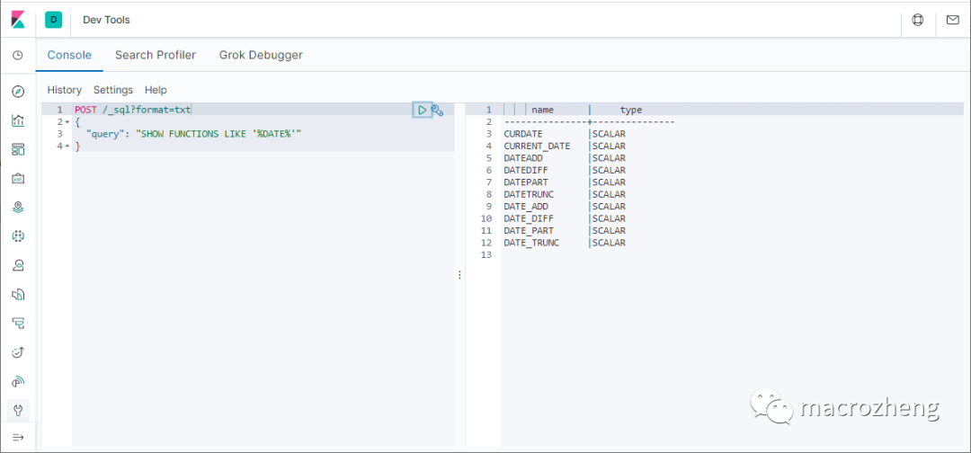 使用SQL查询ES中的数据,不仅可以使用一些SQL中的函数,还可以使用一些ES中特有的函数。