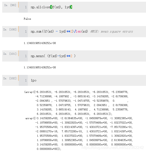 As a benchmark, consider first an ordinary least-squares regression given the noisy data, using NumPy’s polyfit function