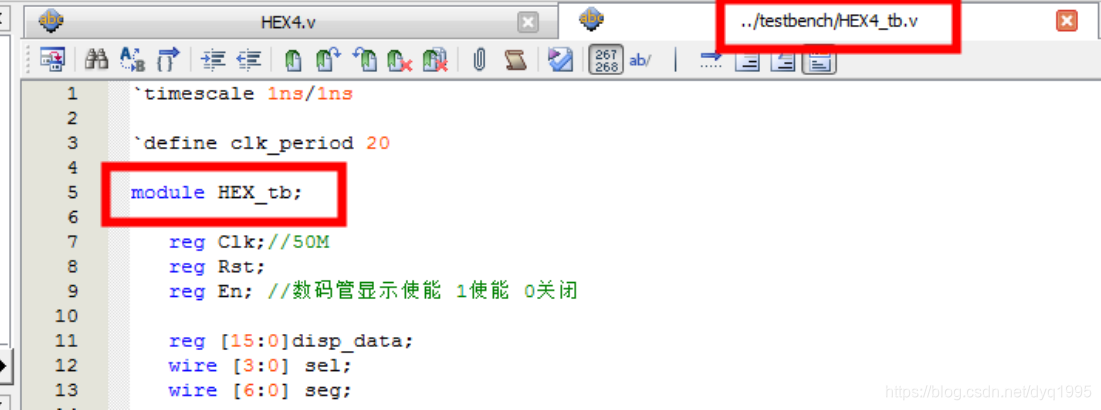 这是因为testbench 文件名与其中 module 后紧跟的名称不匹配,如下图文件名为 HEX4_tb,而实际文件中的 module 名为 HEX_tb: