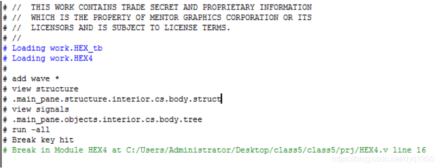解决办法是:将 Testbench 中的 module 名改为 HEX4_tb,仿真即可通过,如下图所示: