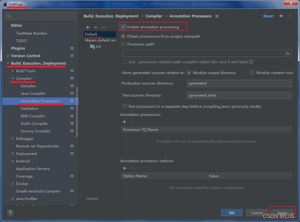 File | Settings | Build, Execution, Deployment | Compiler | Annotation Processors