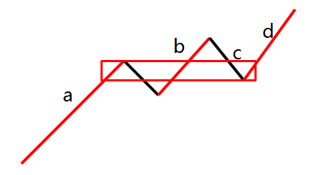 - 若盘整背驰出现了,那么后续可能会出现往回调的一笔c,然后出现了d后形成真正的中枢背驰,但也可能走势不完美,没有形成真正的中枢背驰。
