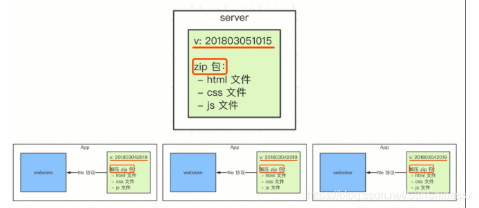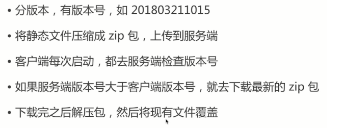 web端每次更新,上传到服务器,然后app端每次打开的时候就从server里面请求最新的资源,这样就实现了自动更新。