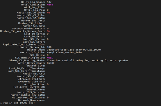 正常情况下,SlaveIORunning 和 SlaveSQLRunning 都是No,因为我们还没有开启主从复制过程