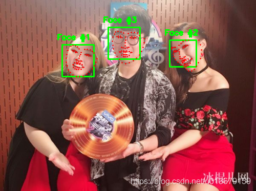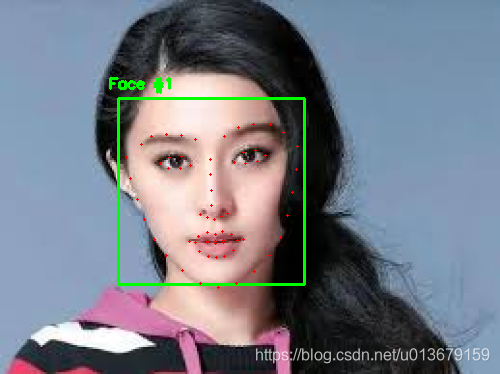 6、将人脸矩形框画在图片上,将68个特征点画在图片上。