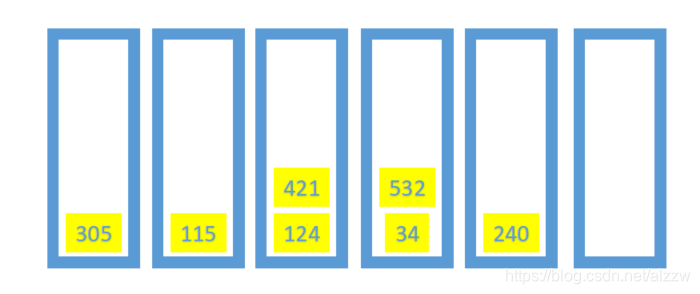 此时根据索引得到新的数组:305,115,124,421,34,532,240