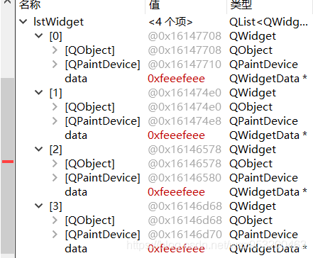 lstWidget.append(new QWidget);情况1: 采用foreach遍历清空,removeOne元素