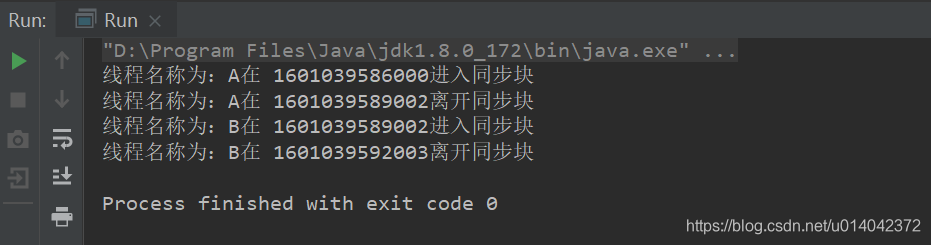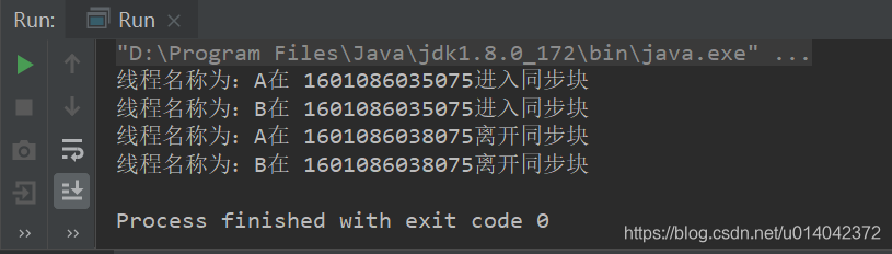 System.out.println("线程名称为:" + Thread.currentThread().getName() + "在 " + System.currentTimeMillis() + "离开同步块");