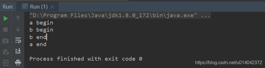 System.out.println("a begin");