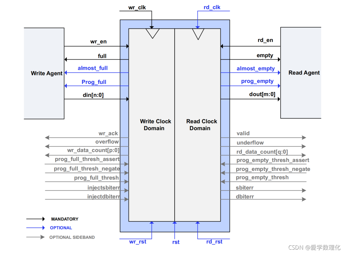 (1)可以看到整个fifo模块分为Write Clock Domain(写时钟领域)和Read Clock Domain。