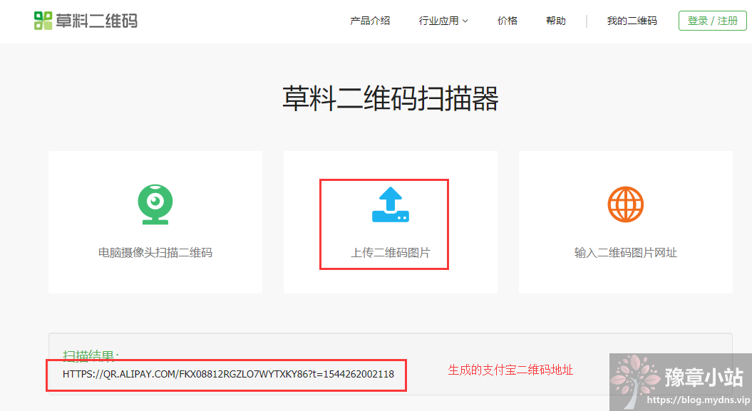 2、打开https://cli.im/deqr ,上传微信、QQ、支付宝的收款二维码图片,会对应生成扫描结果,复制保存好这个结果,第3步要使用。