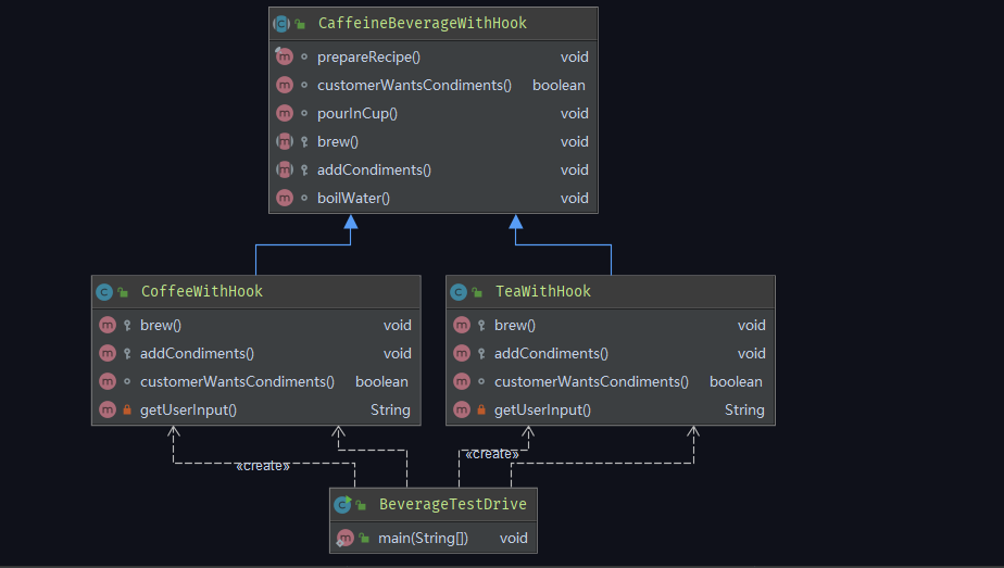 模板方法模式中默认不做事的方法称为钩子(hook)