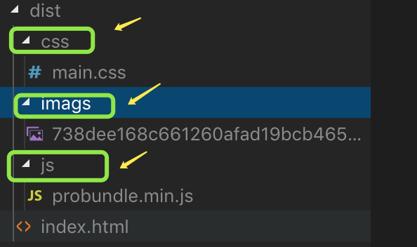 ** css打包到css目录下,js打包到js目录下 效果如下