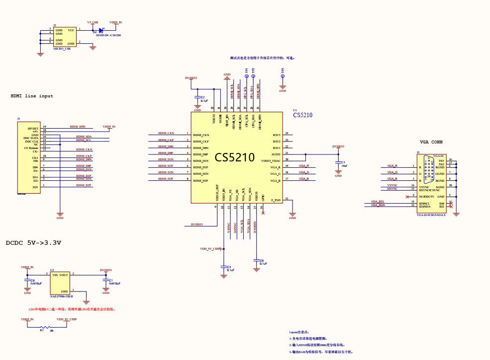 CS5210设计HDMI转VGA音视频转接线或者转换器产品设计应用电路图如下所示: