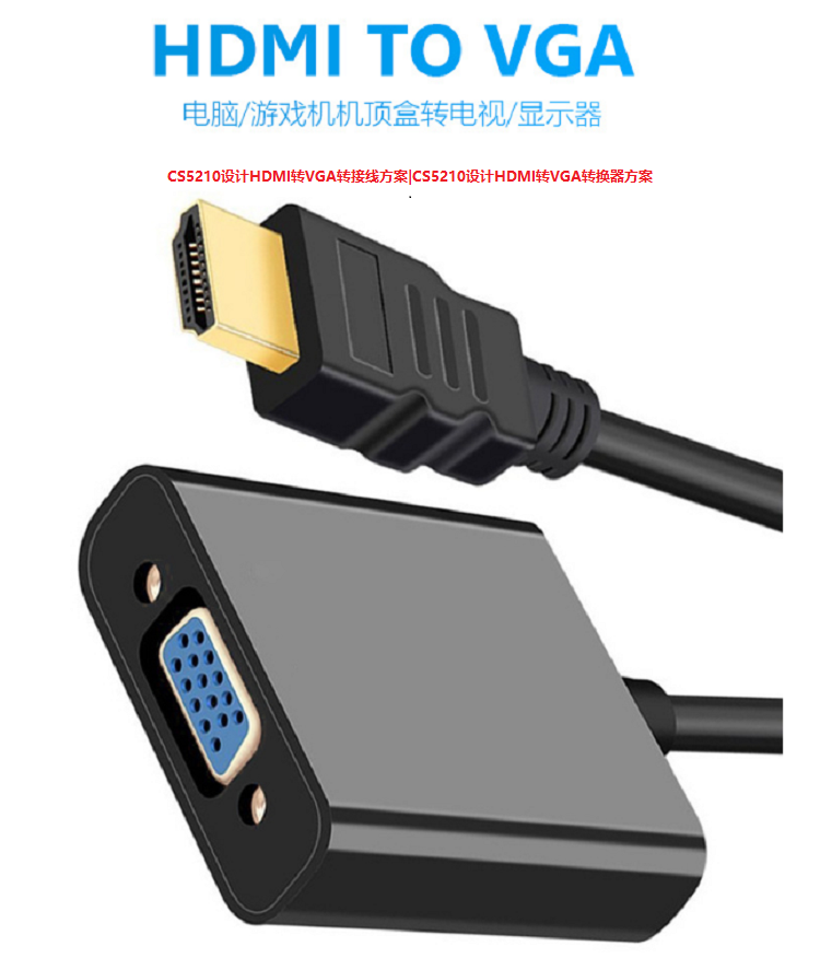 CS5210设计HDMI转VGA转接线或者HDMI转VGA转换器方案产品形态如下