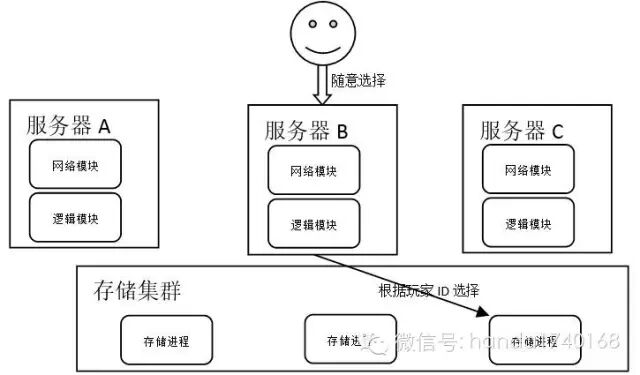 由于多进程服务器模型的发展,游戏开发者们首先发现,由于游戏业务的特点,那些需要持久化的数据,一般都是玩家的存档,以及一些游戏本身需要用的,在运行期只读的数据。这对于存储进程的分布,提供了非常有利的条件。于是玩家数据可以存放于同一个集群中,可以不再和游戏服务器绑定在一起,因为登录的时候便可根据玩家的ID去存储集群中定位想要存取的存储进程。