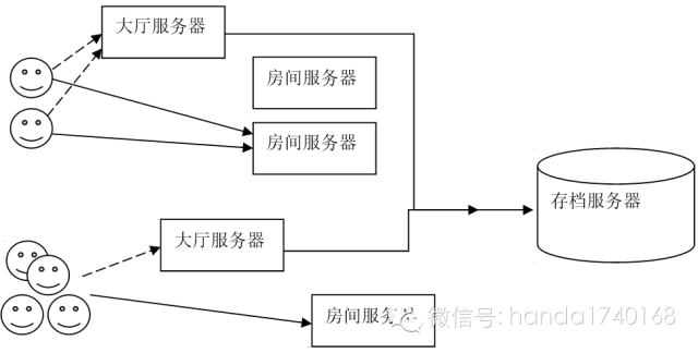由于“大厅服务器”只负责“组队”,所以其承载力会比具体的房间服务器更高一些,但这里仍然会是性能瓶颈。所以一般我们需要尽量减少大厅服务器的功能,比如把登录功能单独列出来、把玩家的购买物品商城功能也单独出来等等。最后,我们也可以直接想办法把“组队”功能也按组队逻辑做一定划分,比如不同的组队玩法、副本类型、组队用户等级等等。