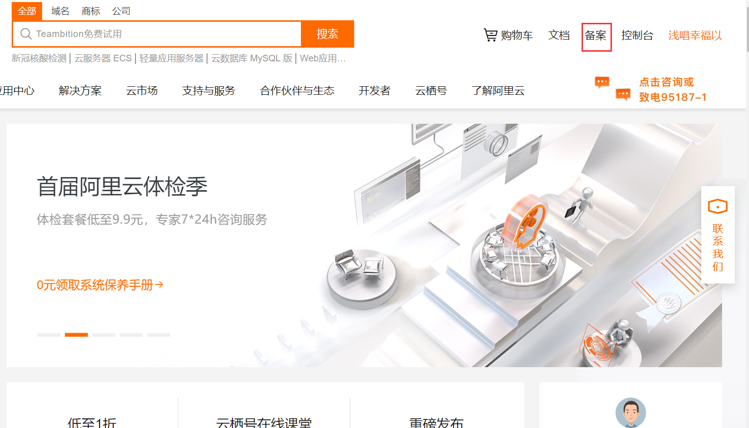1.首先买一台云服务器ECS(阿里云、腾讯云、百度云等等),根据自己的需求去买什么样的配置 这里我买的是阿里云 的服务器,设置用xshell远程登录登录 前面有一篇文章我已经讲到了 这里就不多讲了 ,然后在阿里云上买一个域名,根据阿里云官方的步骤去写,最后购买成功之后 就说明你已经给自己的域名占坑了,但还没完 我们还得进行备案 备案步骤:填写主体信息==>填写网站信息==>上传材料==>阿里云初审==>阿里云提交管局==>工信部手机号验证==>管局审核 前面三步填写完成之后一个小时内就会有工作人员打电话你进行审核信息确认 中间还有一个手机验证号码,最后是管局审核 管局审核正常审核时间是8天 这里具体怎么备案就不详细讲解了 登录阿里云网站点如下图按钮进行备案操作 如下图: