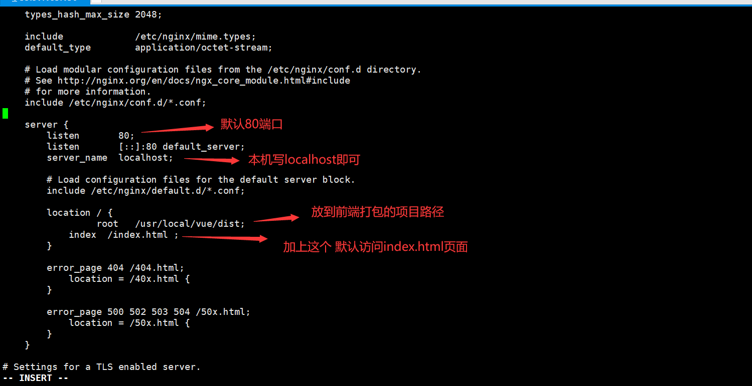 4.进行编辑nginx.conf配置 文件 编辑命令为 vi nginx.conf 如下图: