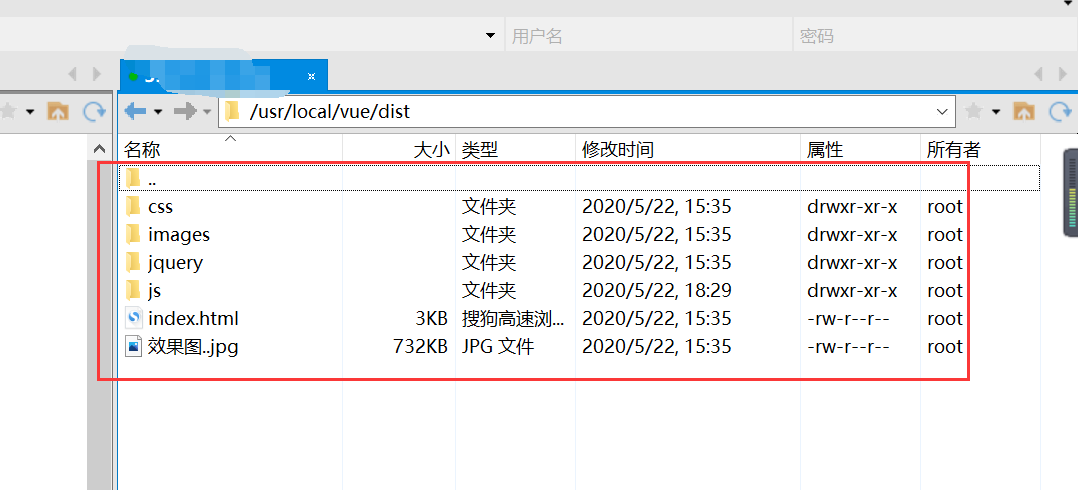 5.编辑完以上配置文件之后 按ESC退出 输入:wq!保存退出 然后切换到sbin目录进行Nginx启动 切换命令为 cd /usr/sbin 输入启动命令 ./nginx 然后用xftp6进行文件传输 将前端项目传到刚才写的那个目录下 我们的如下: