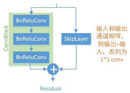 2 """docstring for Residual""" # 输入和输出相等,为x+3*(BN+ReLU+conv);否则输入通过1*1conv结果和3*(BN+ReLU+conv)求和