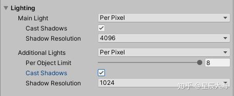- 选逐像素可以产生阴影并设置阴影贴图分辨率。