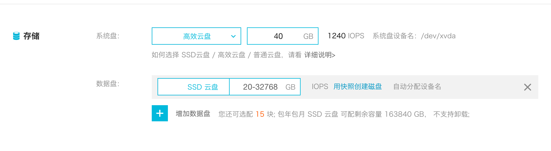 而普通云盘则是阿里云最早提供的云盘,在三盘副本和高可靠性下性能孱弱,至存在于系列一的无I/O 优化实例用。高效云盘则是在三盘副本和高可靠性下提供 1240~3000 IOPS的磁盘性能,在60G以下性价比凸显。SSD云盘则是买的越大性能越好,最大提供20000 IOPS 的性能,磁盘大于60G的情况下有购买价值,性能明显。