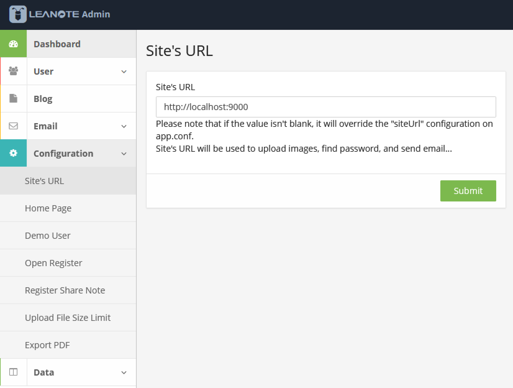 第三步配置 Leanote