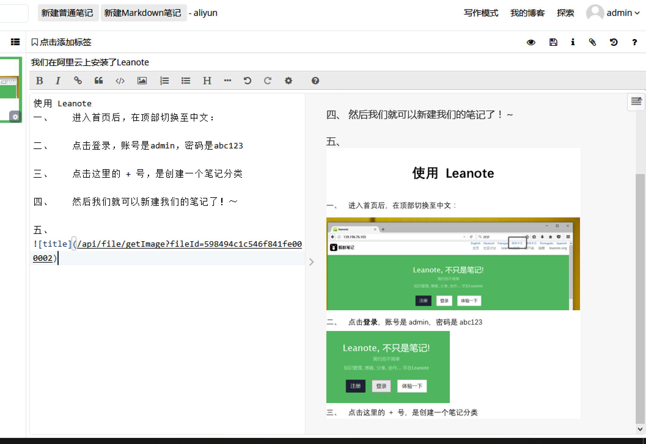 第四步使用 Leanote
