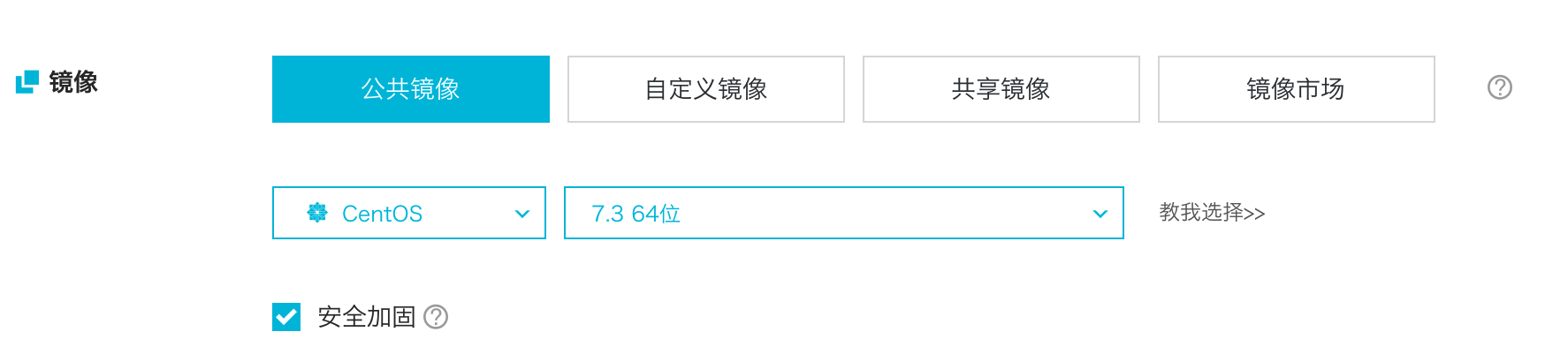 公共镜像:是由阿里云官方提供公共基础镜像,仅包括初始系统环境。请根据您的实际情况自助配置应用环境或相关软件配置。