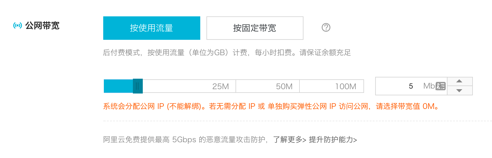 公网带宽则分按使用流量和按固定带宽计费,按流量计费顾名思义就是用多少流量扣多少钱,不同地域的每G流量资费不一样。按带宽计费就是先买断多少M的带宽,后面无关用多少流量都不计费。一般来说正常建站最好有至少2M的带宽并配合OSS能产品托管附件会比较好。
