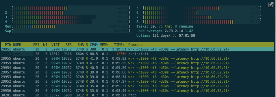wrk -c1000 -t8 -d30s --latency http://10.60.82.91/