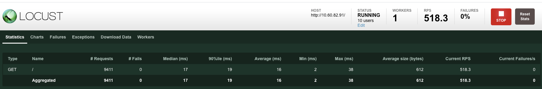 locust -f load_test.py --host=http://10.60.82.91 --no-web -c 10 -r 10 -t 1m