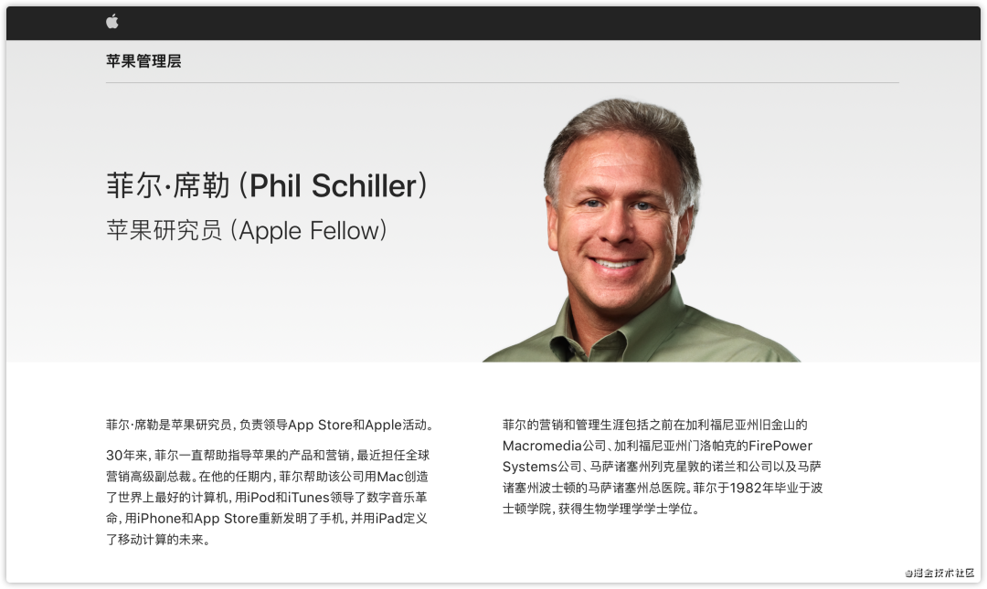 在 2020 年 8 月 4 日,Phil Schiller(菲尔·席勒)升任 Apple Fellow(苹果研究员),(小编注:Apple Fellow 官方新闻稿没有翻译,但“Fellow” 大概可以翻译为 “院士”、“研究员”。咱们就按苹果网页翻译工具的,翻译为研究员。)