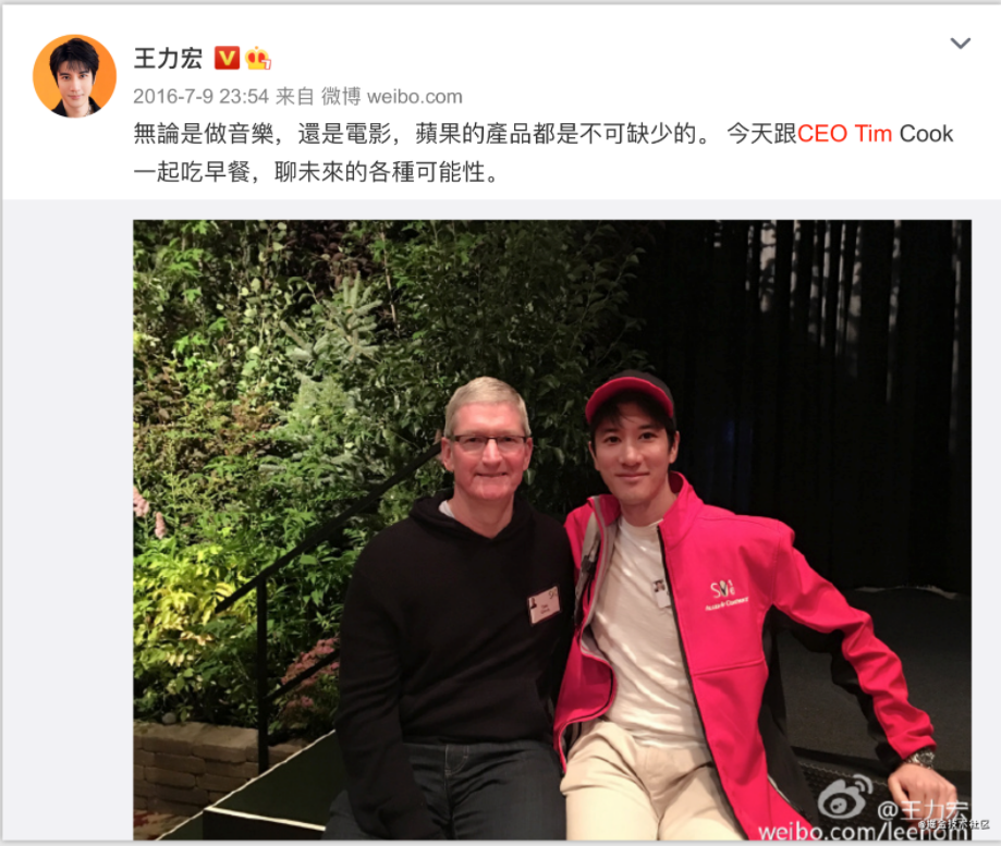 这样我们就不多说了, 凭借库克的老友关系,我们没有理由不相信,过审苹果商店的机会一定比普通人高!为什么这么说,咱们在看看一条微博: