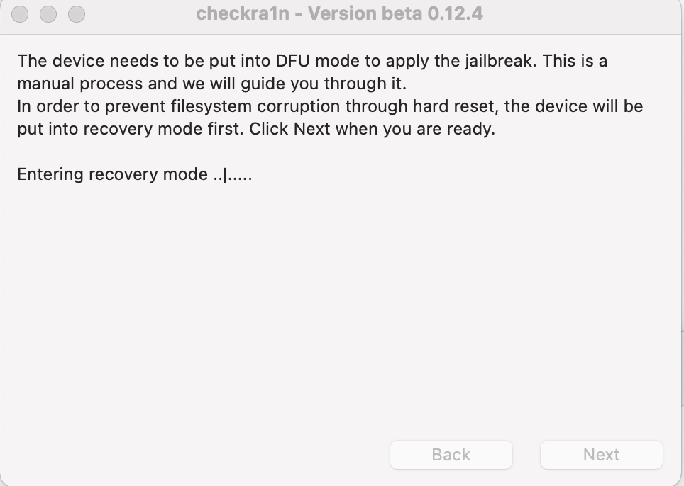 checkra1n 并不是完美越狱,重启之后越狱会失效,需要再次进入 DFU 模式,重新操作上面越狱的步骤。