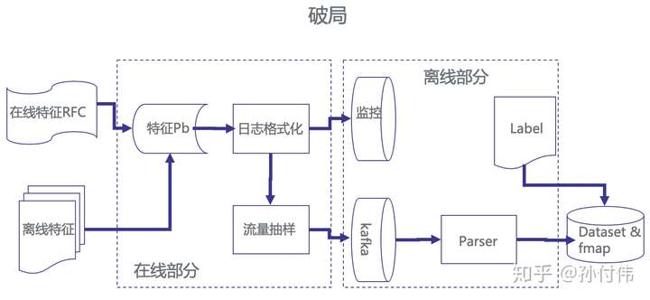 这里边反应的一个本质问题是特征处理流程的规范性问题。那么我们是如何来解决这一点呢,首先,我们用在线代替了离线,通过在线落特征日志,而不是 Raw Data,并统一了特征日志 Proto,如此就可以统一特征解析脚本。