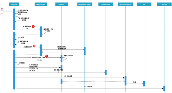 - 方式二: 通过堆外内存池获取writeBuffer,也属于MappedFile中的一种buffer。通过commit方法提交到fileChannle,提交操作后,文件通道对应的mappedByteBuffer就有了此消息数据。再通过FileChanle.flush写入到磁盘中。