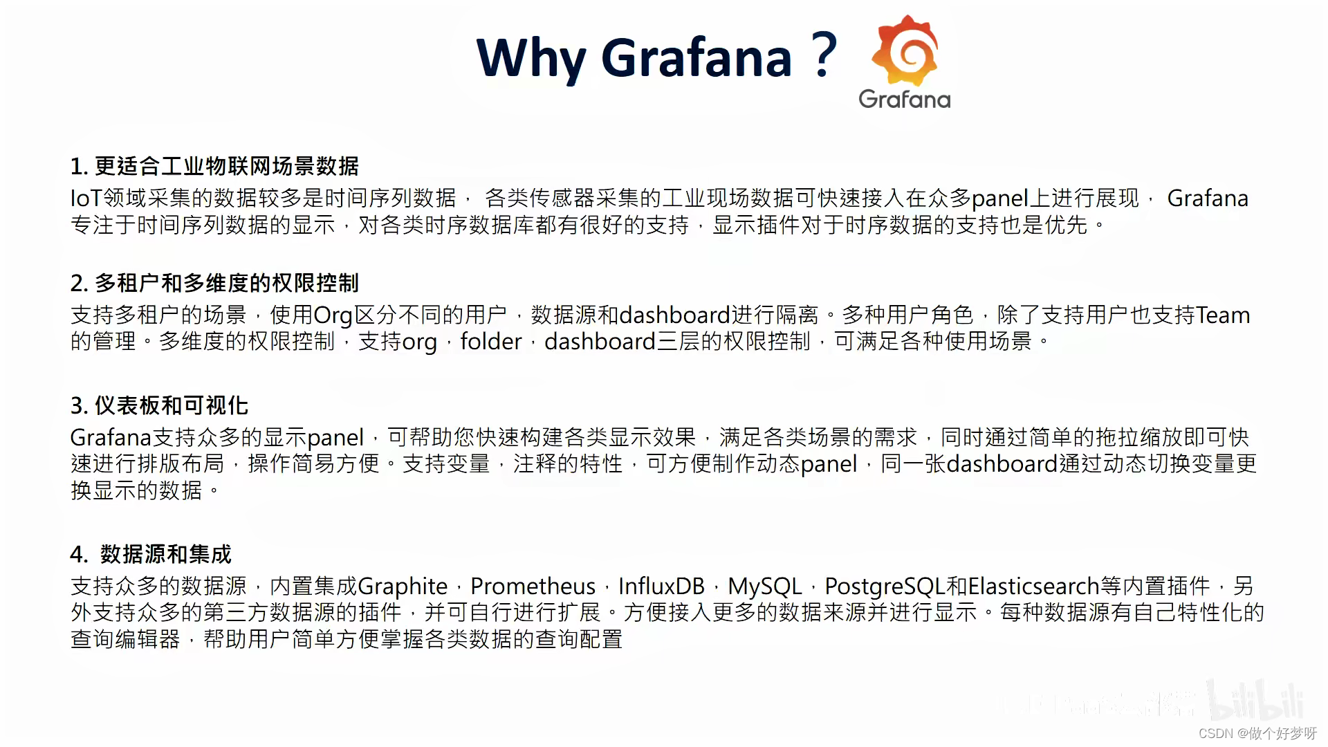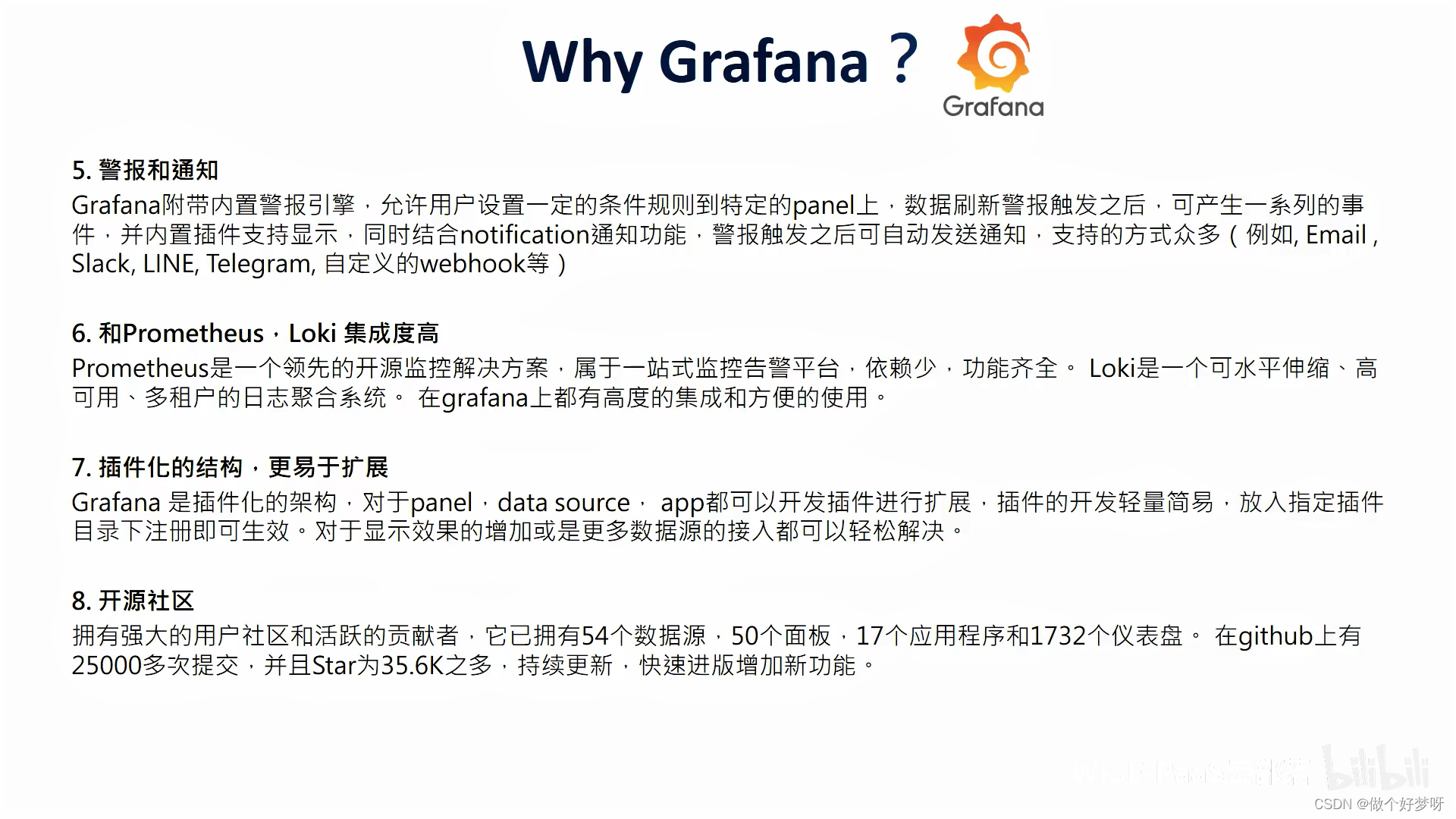 2.支持众多插件 ,使用Grafana插件可以连接自己的工具和团队,数据源插件通过 API 挂接到现有数据源中,实时呈现数据,而无需迁移或引入数据。