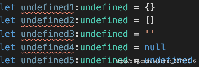 8.void、null、undefined类型(声明了void类型的变量只能取值为undefined,至于null和undefined只能取值为本身,所以使用他们声明变量没有太大的意义)