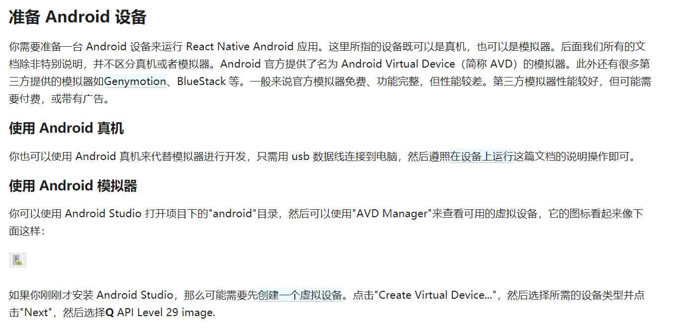 官网参考地址:(搭建开发环境 · React Native 中文网)。