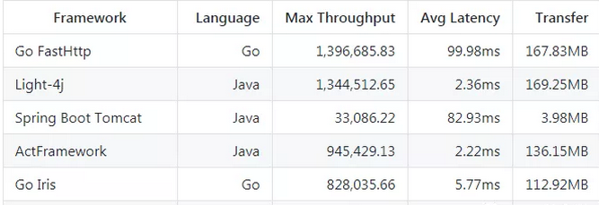 详细报告:https://github.com/networknt/microservices-framework-benchmark