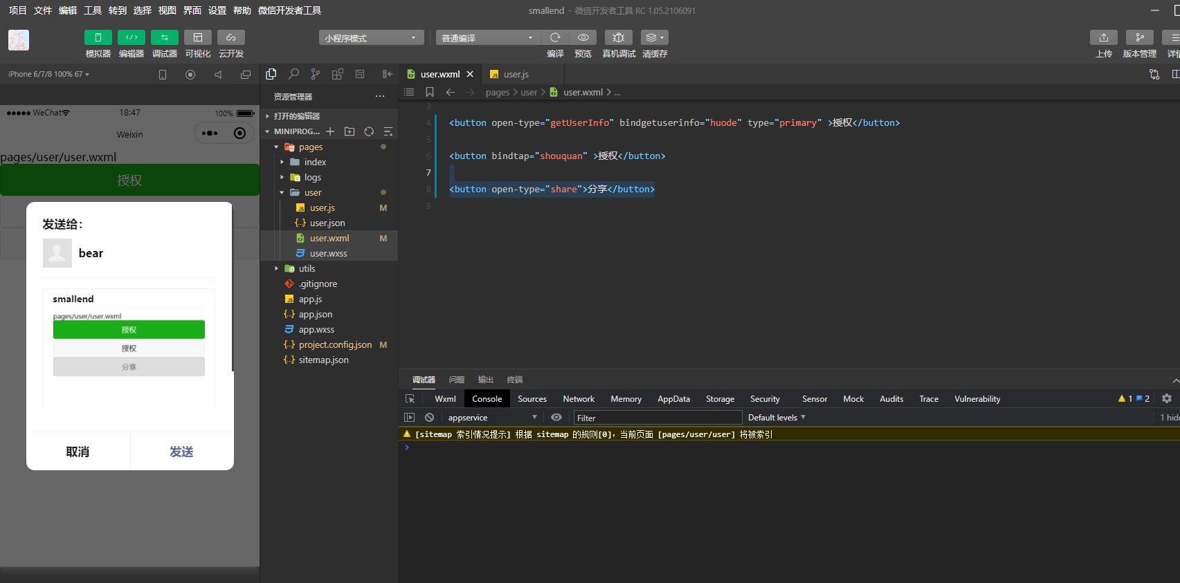 <button open-type="share">分享</button>