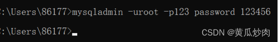 mysqladmin -u用户名 -p旧密码 password 新密码,注意,password前面没有 - ,例如:我们再把密码改成123456: