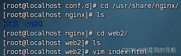 [root@localhost conf.d]# mkdir /usr/share/nginx/web2