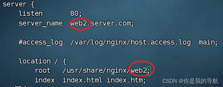 域名修改为web2.server.com。