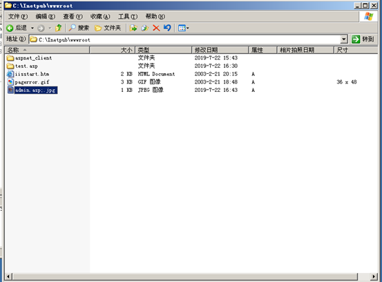 这个时候我们新建一个文件夹为test.asp并把刚刚的test.jpg拖进去,再次进行访问