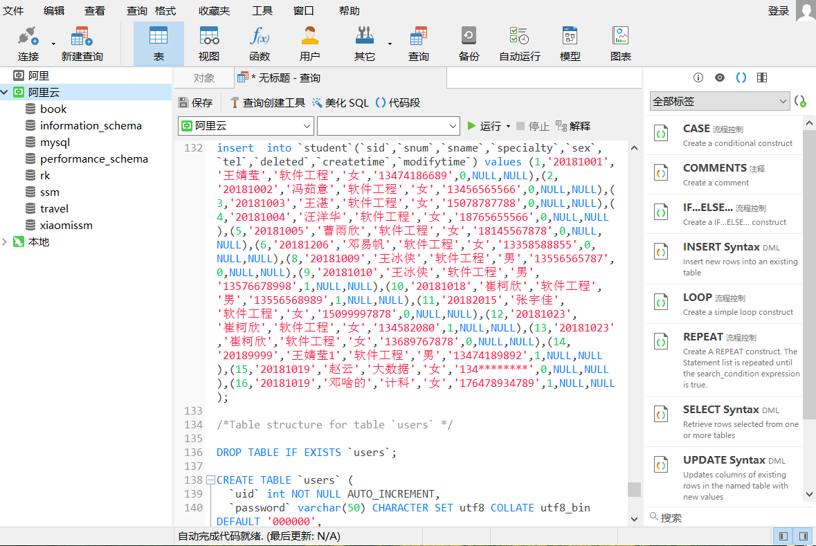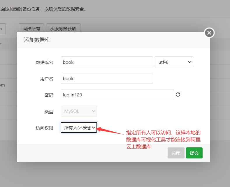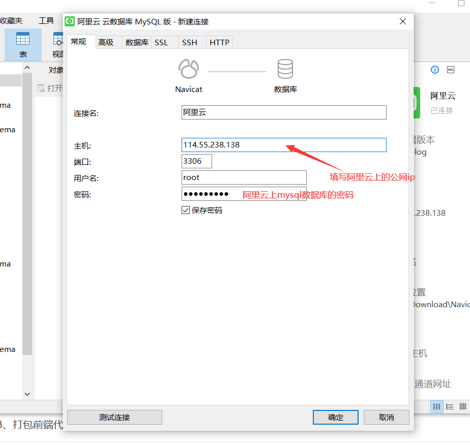 1.2、创建完成后本地使用Navicat连接到阿里云上的数据库