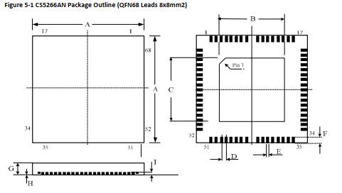 图5-1 CS5266封装外形(QFN68引线8x8mm2)